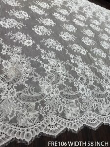 FRE106 – Eyelash Chantilly Laces And Fabrics – SUPER FINE EYELASH LACE FABRIC BOTH SIDE SCALLOP WIDTH 58 INCH PRICE FOR 3 METERS DYEABLE EXPORT QUALITY
