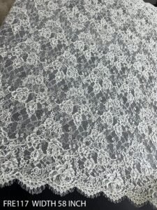FRE117 – Eyelash Chantilly Laces And Fabrics – SUPER FINE EYELASH LACE FABRIC WHITE BOTH SIDE SCALLOP WIDTH 58 INCH PRICE FOR 3 METERS DYEABLE EXPORT QUALITY