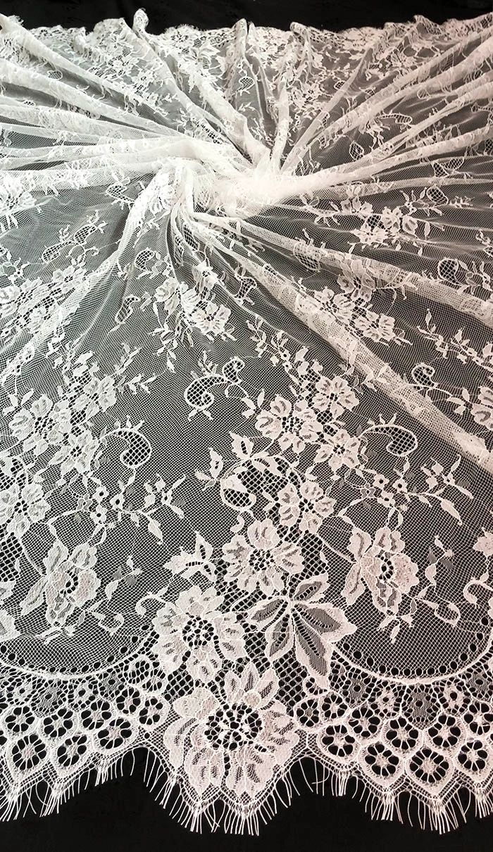 Superfine Eyelash Chantilly Lace Fabric FRE38 – 60" Dyeable Export Quality