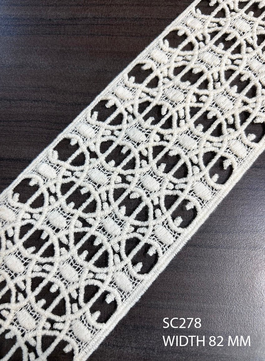 SC278 – Chemical Laces – COTTON READY FOR DYE WIDTH 82 MM PRICE PER METER DYEABLE EXPORT QUALITY