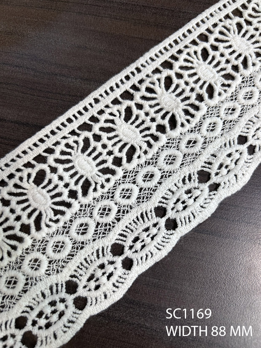 SC1169 – Chemical Laces – COTTON READY FOR DYE WIDTH 88 MM PRICE PER METER DYEABLE EXPORT QUALITY