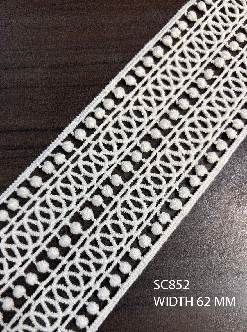 SC852 – Chemical Laces – COTTON READY FOR DYE WIDTH 62 MM PRICE PER METER DYEABLE EXPORT QUALITY