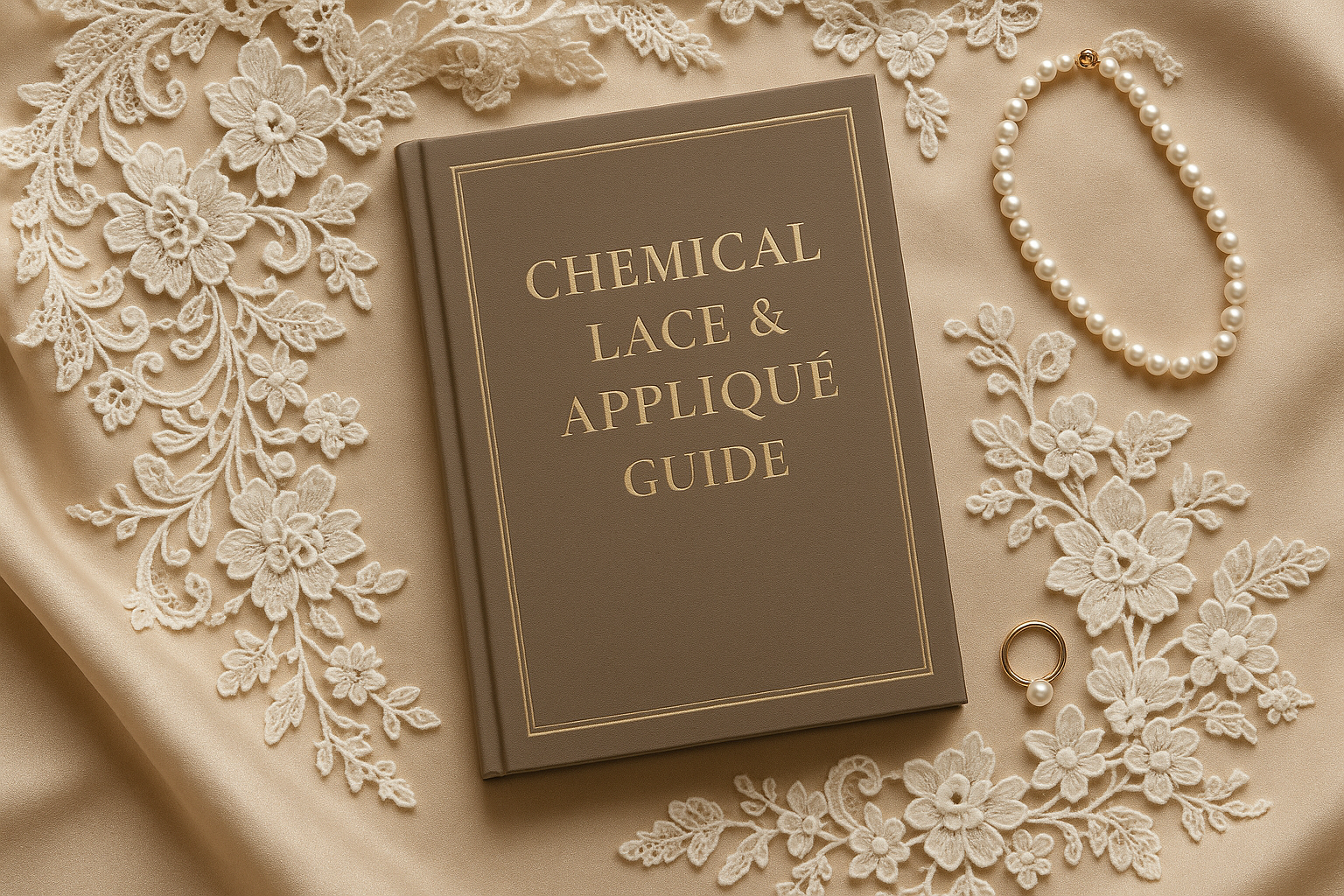 High-resolution chemical lace applique fabric showcasing intricate embroidery and cutwork design. Used for couture garments, ethnic wear, bridal fashion and decorative lace embellishments.