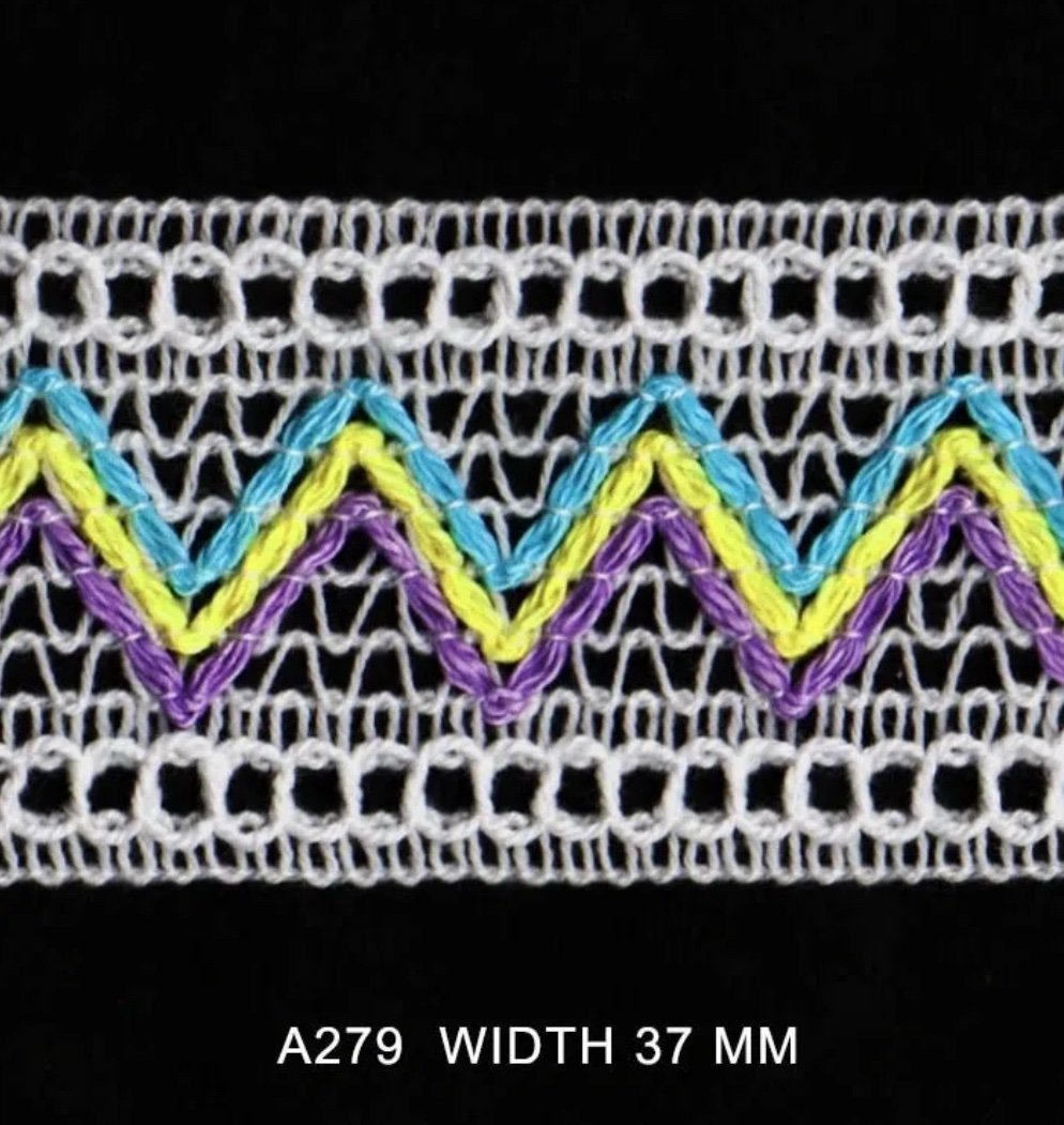COTTON WHITE WITH 3 COLORS WIDTH 37MM ALL PRICES IN METERS