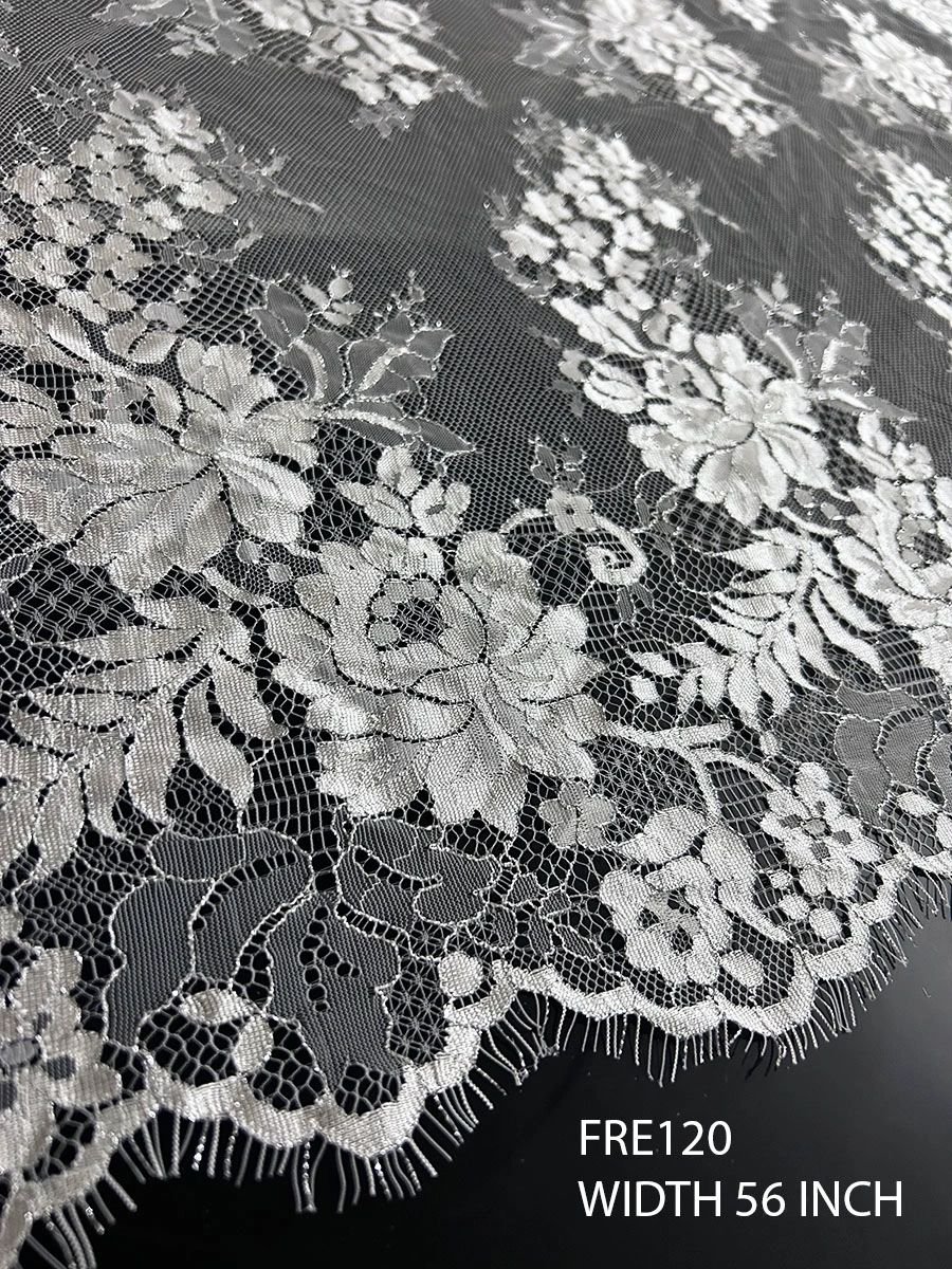 SUPER FINE EYELASH LACE FABRIC WHITE WITH SILVER LUREX