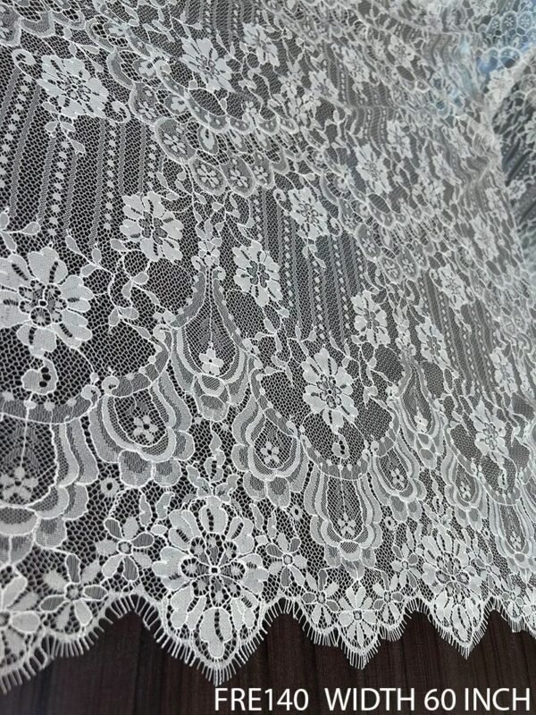 SUPER FINE EYELASH LACE FABRIC WHITE BOTH SIDE SCALLOP
