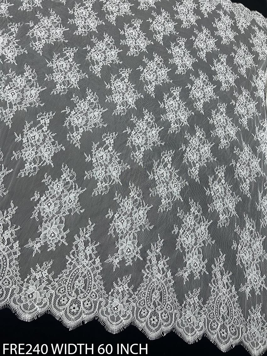 Introducing the FRE240 Fine Soft Chantilly Lace – a remarkable choice for designers, crafters, and all fabric enthusiasts. Made with impeccable attention to detail, this premium lace fabric is dyeable, allowing you to customize it to your exact requirements. Whether you’re working on bridal wear, elegant evening attire, or intricate home décor, its fine texture and unmatched softness provide a luxurious canvas for limitless creativity.