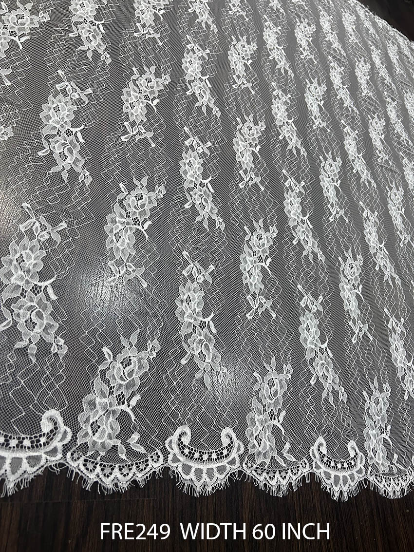 Transform your designs with the FRE249 Chantilly White Dyeable Lace Fabric, meticulously crafted to bring sophistication to your creations. This premium lace fabric is designed to cater to your most intricate couture and bridal projects, offering a perfect blend of style and functionality. Whether you’re crafting wedding gowns, evening dresses, or custom accessories, this fabric serves as the ultimate canvas to spark your creativity.