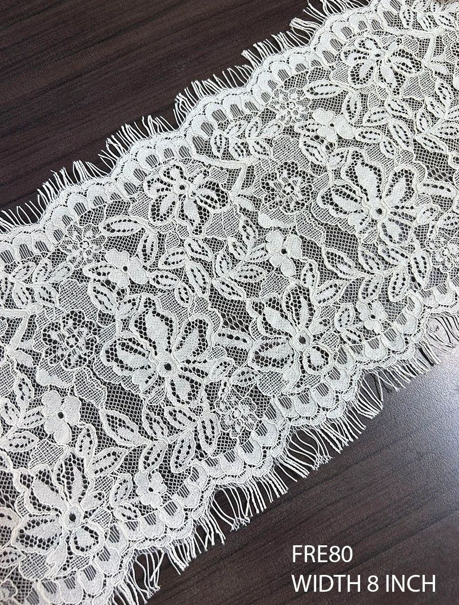 The FRE80 Chantilly White Lace is a true embodiment of sophistication and grace. With its intricate floral net pattern, this 8-inch wide lace is the ideal choice for bridal accents, formal wear, and creative crafting projects. Whether you’re designing a wedding gown, embellishing table settings, or crafting unique accessories, this lace offers endless possibilities to create something truly special.