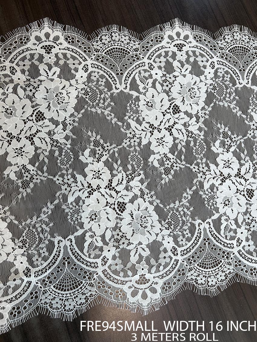 Elevate your designs with the FRE94 Small White Chantilly Eyelash Lace, a luxurious fabric meticulously crafted to bring sophistication and elegance to any project. Whether you are designing wedding dresses, couture garments, or intricate accessories, this lace exudes an unparalleled sense of refinement, making it a must-have choice for designers and craft enthusiasts alike.