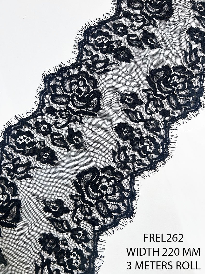 ✨ FREL262 Black Chantilly Eyelash Lace – 220mm Width (3 Meter Roll)