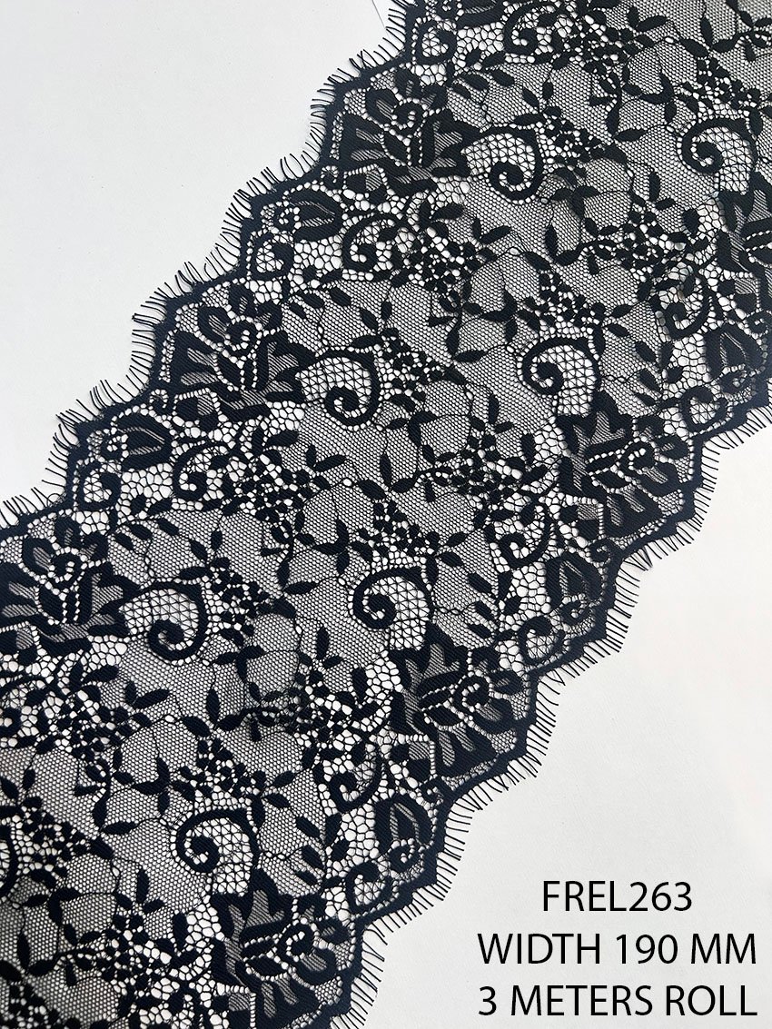 ✨ FREL263 Black Chantilly Eyelash Lace – 190mm Width (3 Meter Roll)