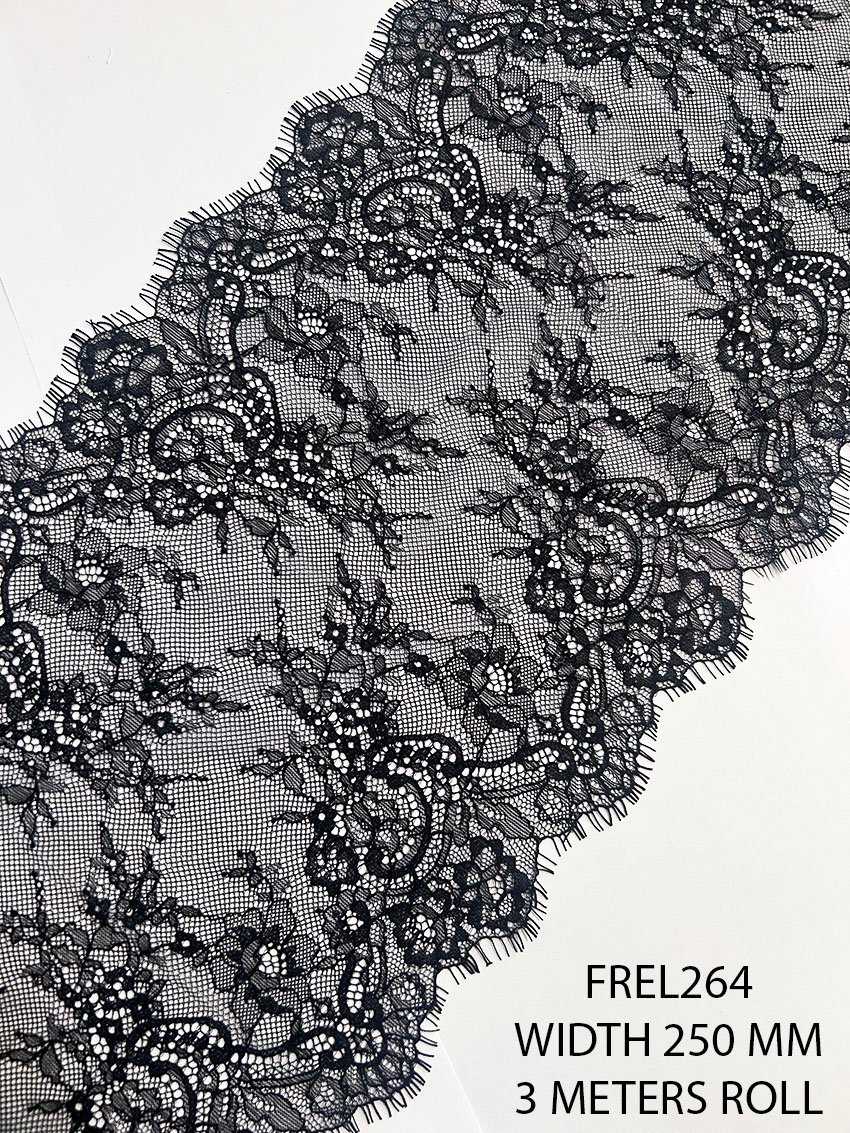 ✨ FREL264 Black Chantilly Eyelash Lace – 250mm Width (3 Meter Roll)