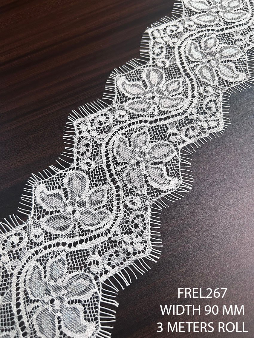 ✨ FREL267 White Chantilly Eyelash Lace – 90mm Width (3 Meter Roll)