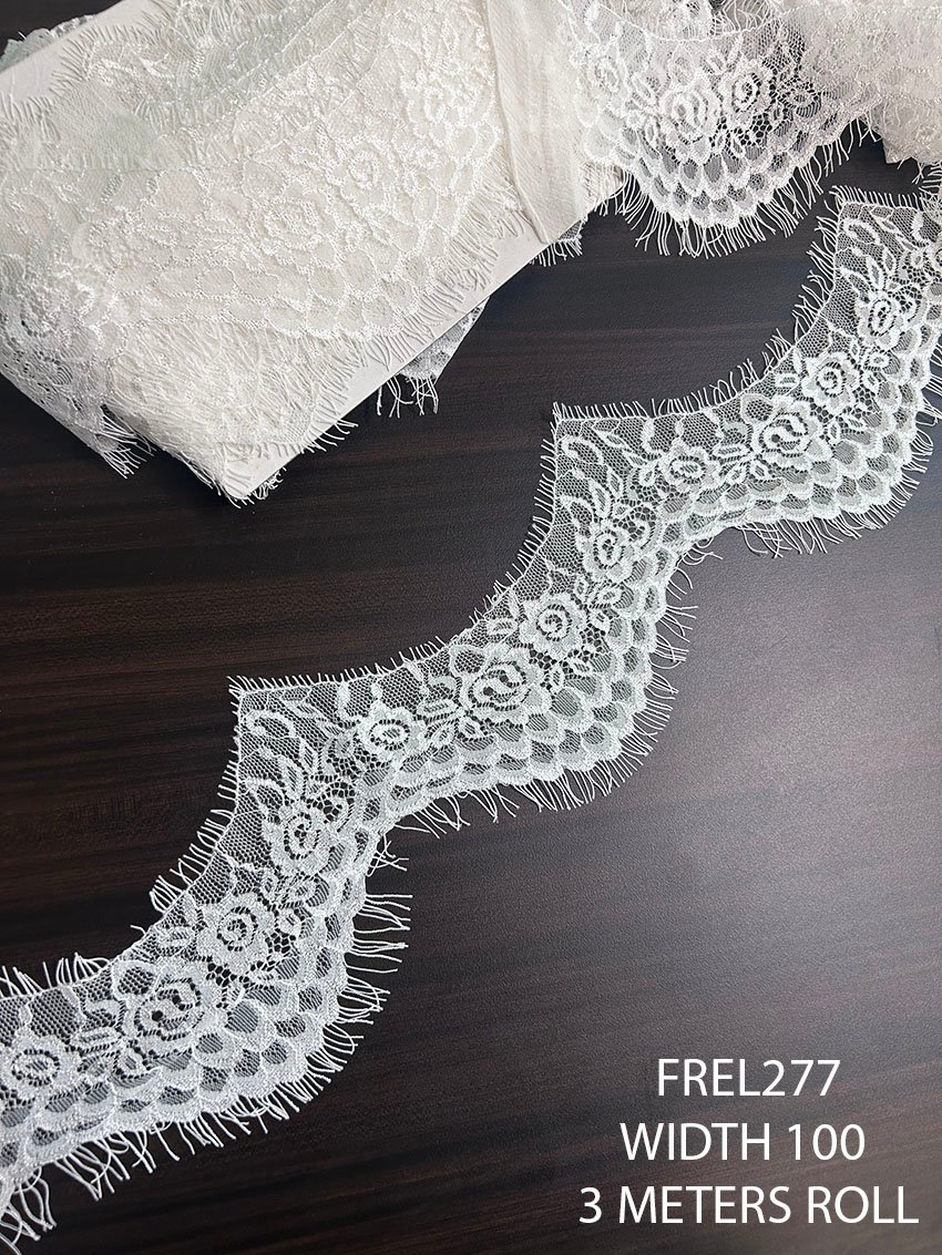 Crafted with precision and finesse, our Soft Chantilly Eyelash Lace is an epitome of sophistication. Featuring a delicate floral rose pattern, this lace instantly elevates the charm of any garment it graces. With its 100mm width, it is perfectly suited for gowns, sleeves, and designer garments that demand uncompromising quality and style.