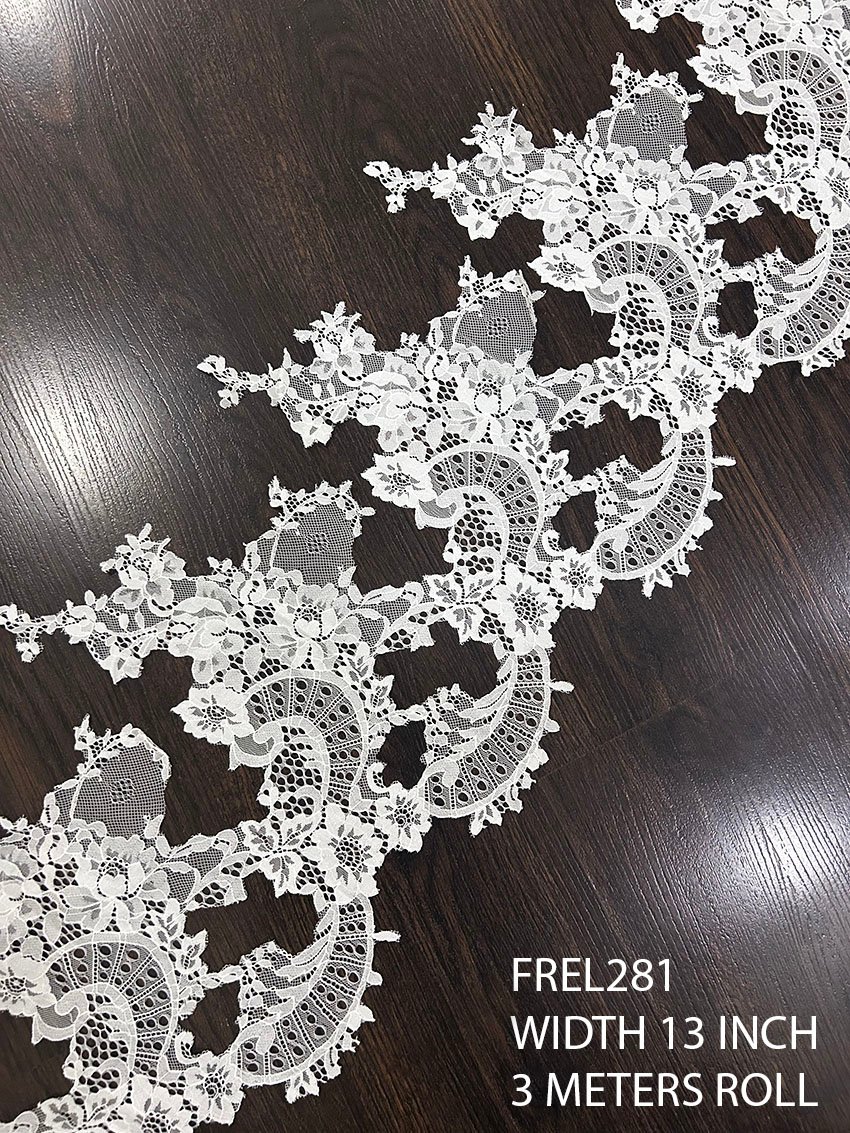 Designed to merge beauty and function, this lace offers premium quality for discerning designers. Its wide coverage and intricate detailing make it a must-have for anyone seeking to add elegance and drama to their creations. Whether it’s sleeves, gowns, or statement embellishments, FREL281 is the ultimate choice for delivering timeless charm and modern appeal.
