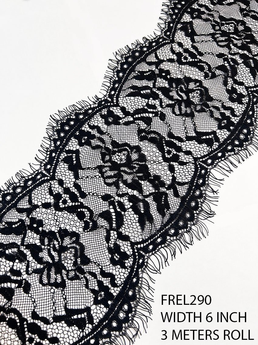 With a soft net texture and a generous 6-inch width, this Chantilly lace is ideal for a wide range of projects. Whether you’re designing exquisite gowns, crafting alluring lingerie, or adding a refined edge to dresses, this lace is versatile enough to meet all your designer fashion needs. Its scalloped eyelash edges further enhance its charm, offering a graceful finish to any item.