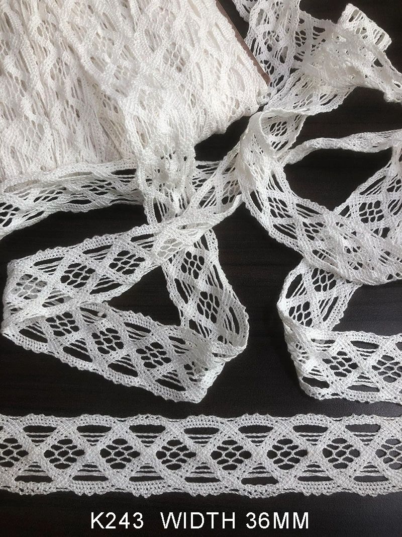 FINE COTTON CROCHET READY FOR DYE WHITE WIDTH 36 MM PRICE PER METER DYEABLE EXPORT QUALITY