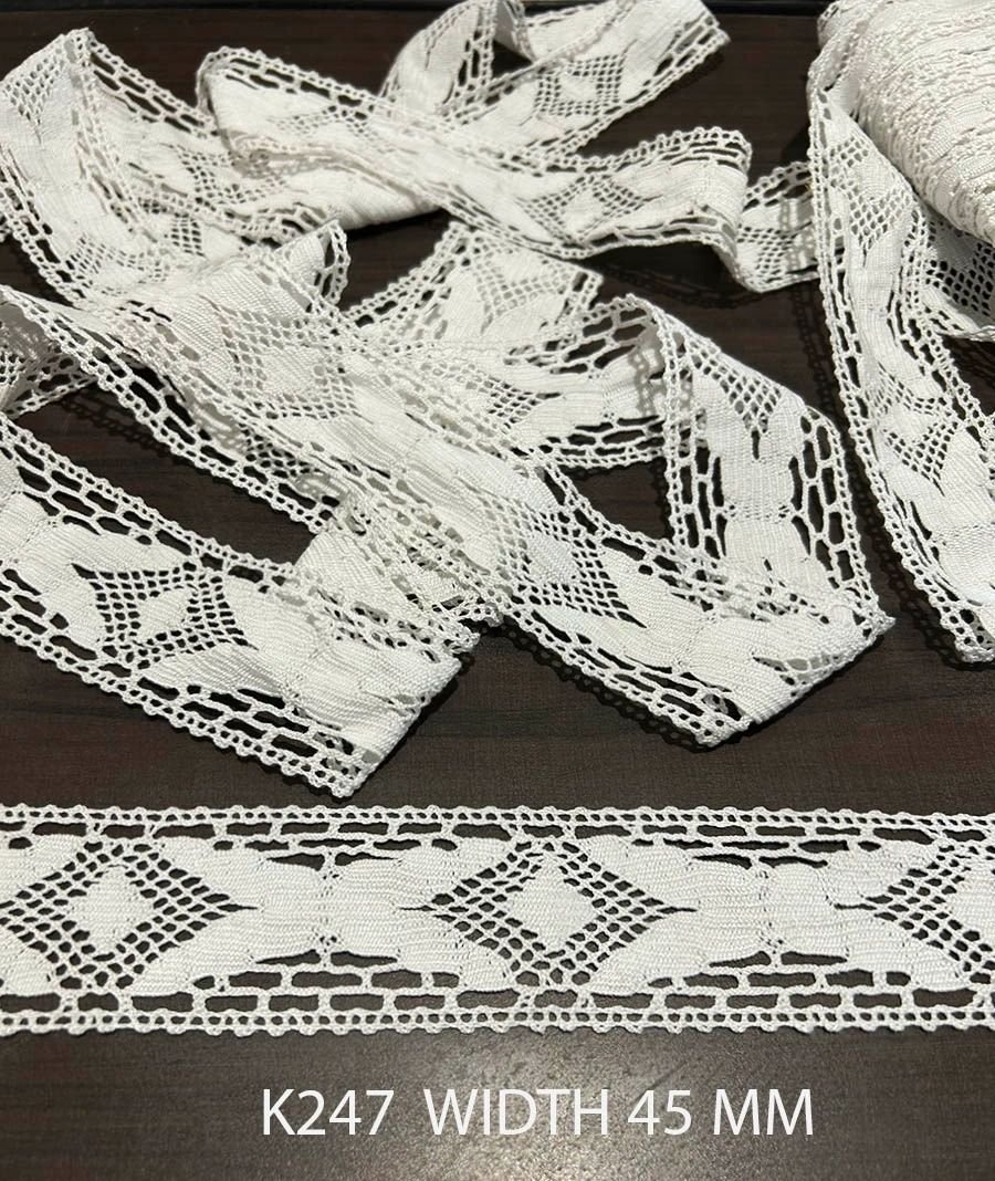 COTTON CROCHET READY FOR DYE WHITE WIDTH 45 MM PRICE PER METER DYEABLE EXPORT QUALITY