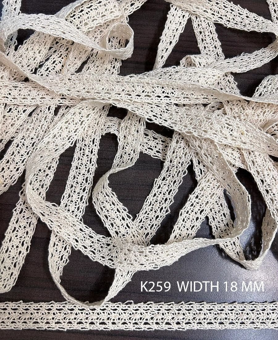 COTTON GREIGE CROCHET LACE WIDTH 18 MM PRICE PER METER DYEABLE EXPORT QUALITY