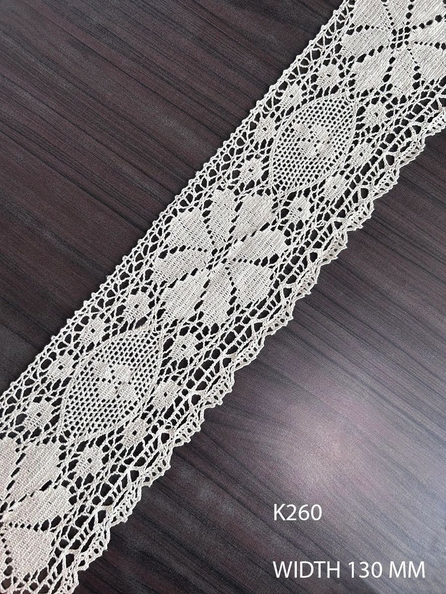 COTTON GREIGE CROCHET LACE WIDTH 130 MM PRICE PER METER DYEABLE EXPORT QUALITY