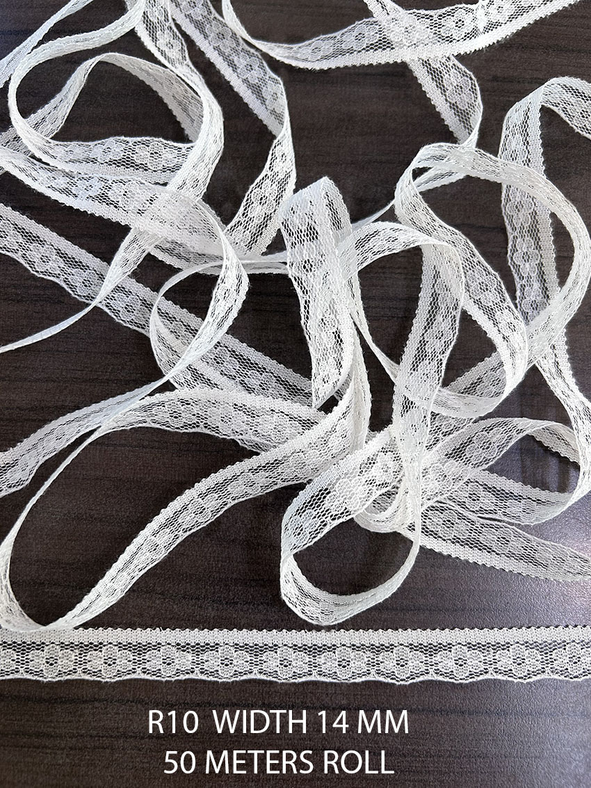 Whether you’re looking to add a refined touch to garments, create decorative trim for curtains, or experiment with innovative patterns, the R10 Raschel white nylon lace delivers the quality and adaptability you need to bring your ideas to life.