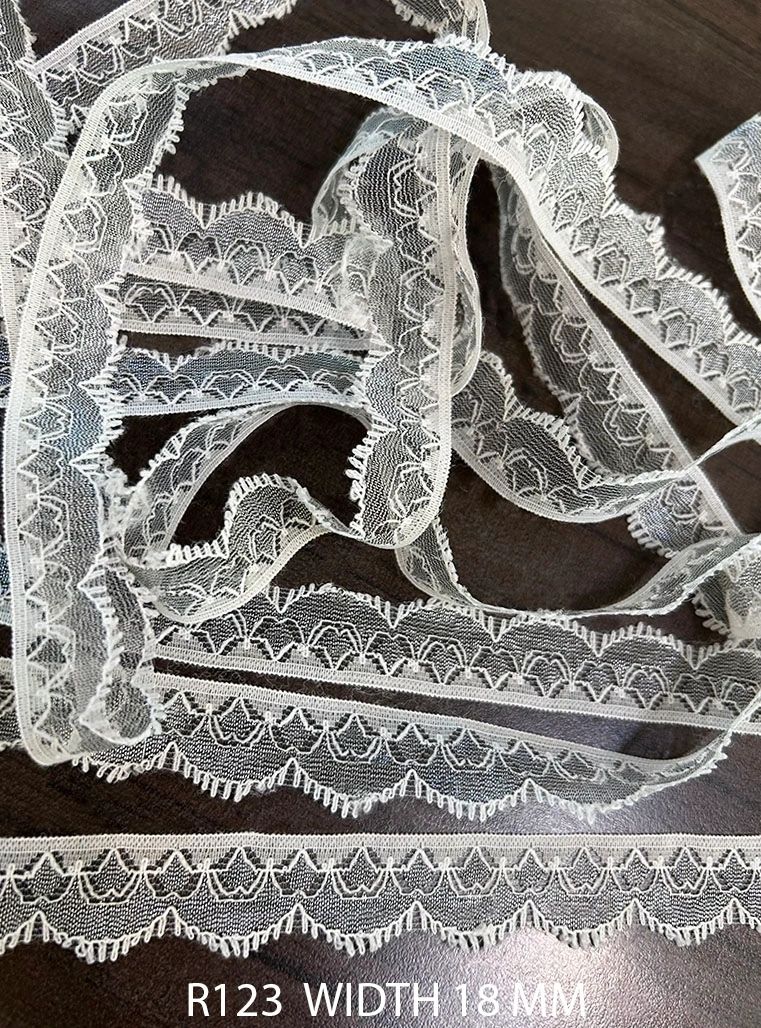 NYLON WHITE AND SILVER READY FOR DYEING WIDTH 18 MM PRICE PER METER DYEABLE EXPORT QUALITY