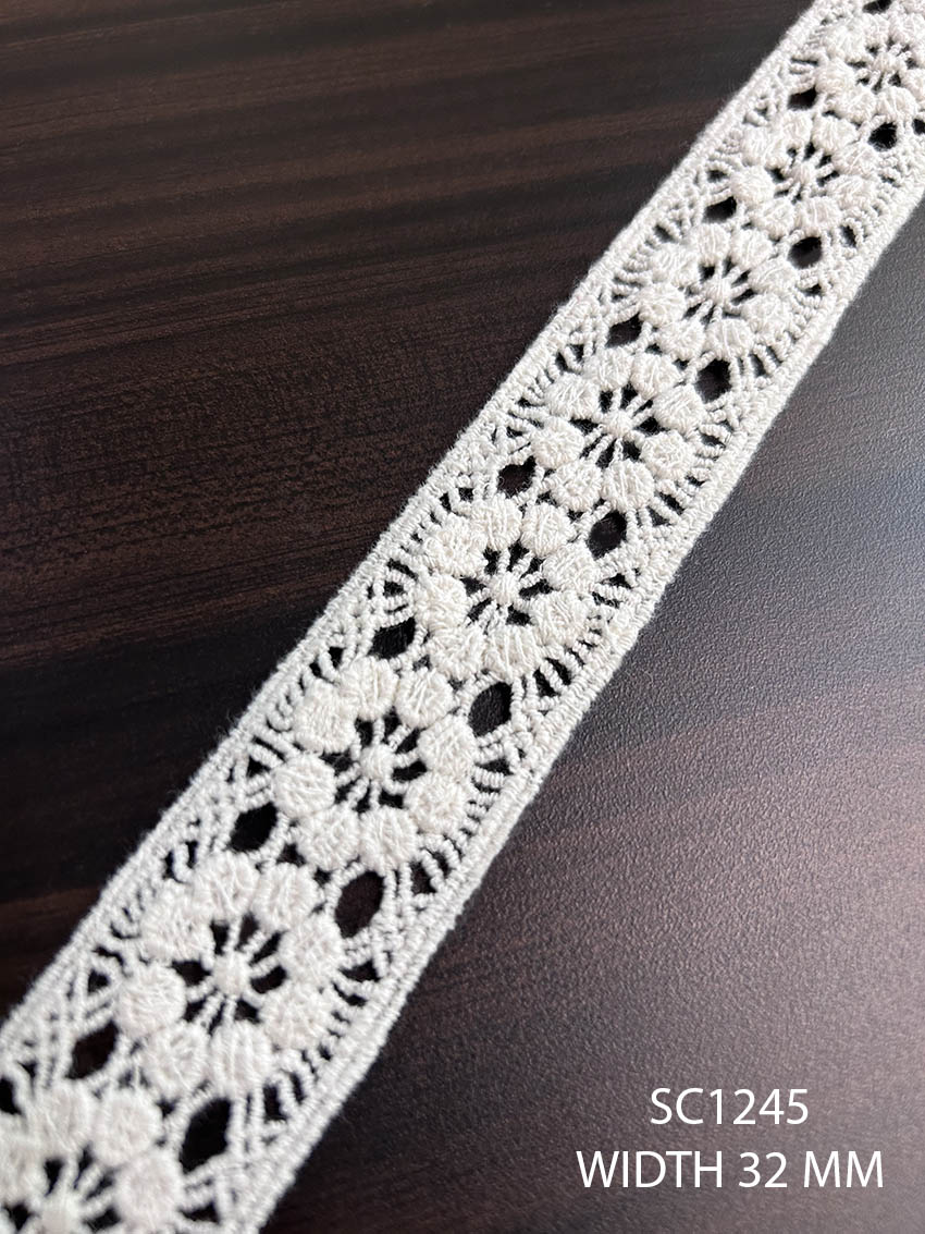 SC1245 Chemical Cotton GPO Lace – 32 MM Width (Dyeable | Export Quality | Per Meter)