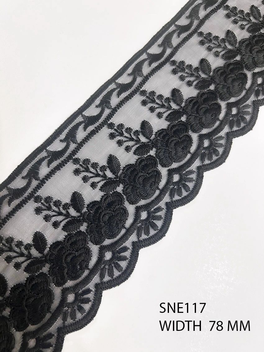 POLY BLACK EMBROIDERY ON ORGANZA MESH NET WIDTH 78 MM PRICE PER METER EXPORT QUALITY