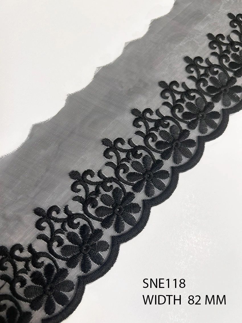 POLY BLACK EMBROIDERY ON ORGANZA MESH NET WIDTH 82 MM PRICE PER METER EXPORT QUALITY