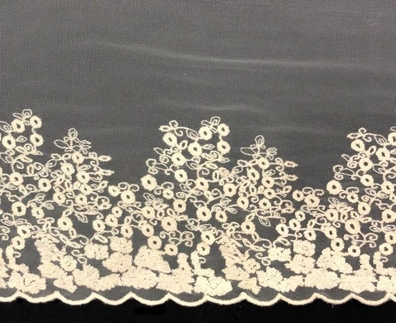 COTTON GREY EMBROIDERY ON MESH NET EMBROIDERY WIDTH 128 SAMPLING PRICE DYEABLE EXPORT QUALITY