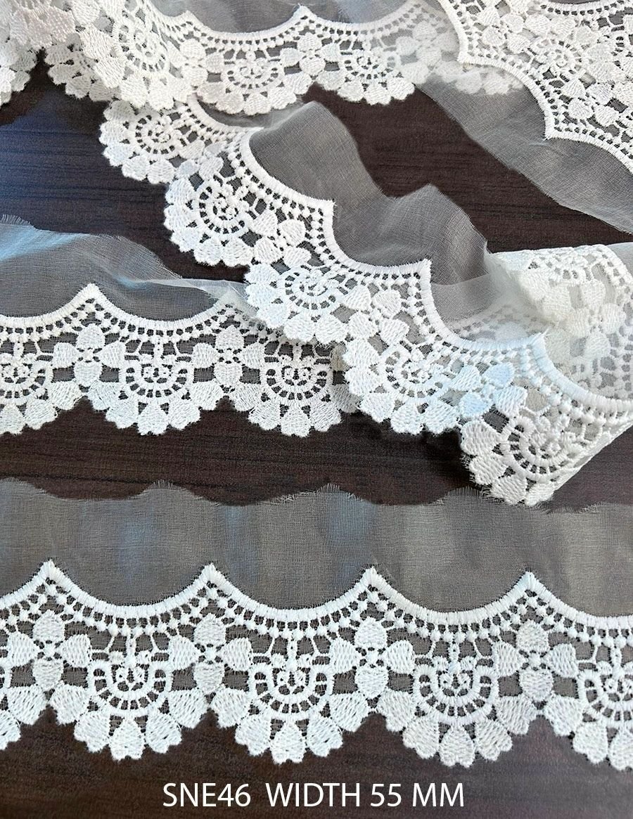 COTTON GREIGE EMBROIDERY ON MESH NET / POLYESTER WHITE EMBROIDERY ON ORGANZA NET