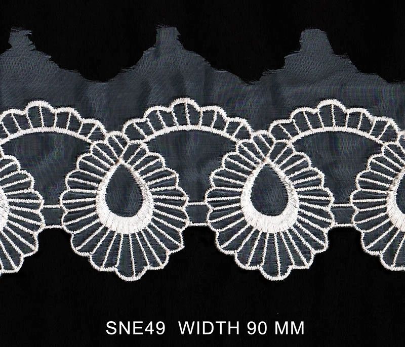 POLY EMBROIDERY ON GLASS NYLON MESH TOTAL WIDTH 90 MM PRICE PER METER EXPORT QUALITY