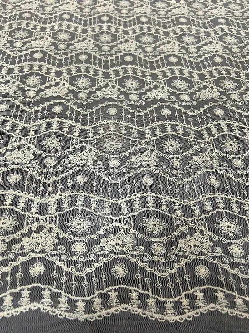 NET EMBROIDERY ALLOVER FABRIC COTTON GREY