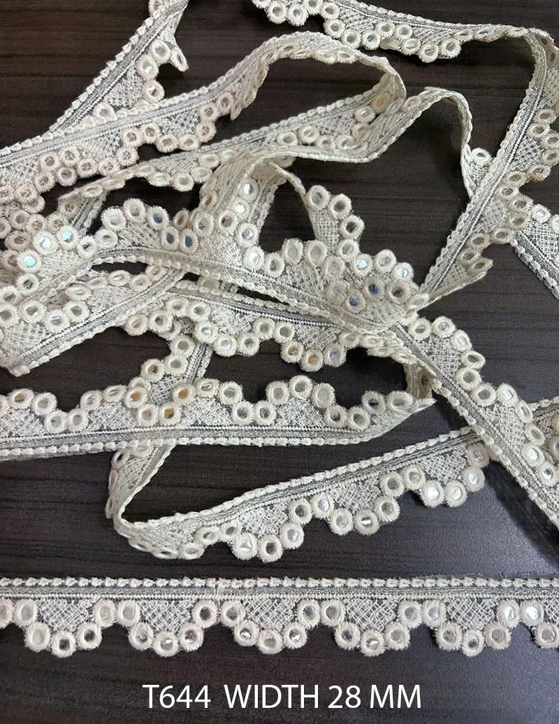 FANCY MIRROR WORK LACE PEARL WHITE COLOR WIDTH 28 MM PRICE PER METER